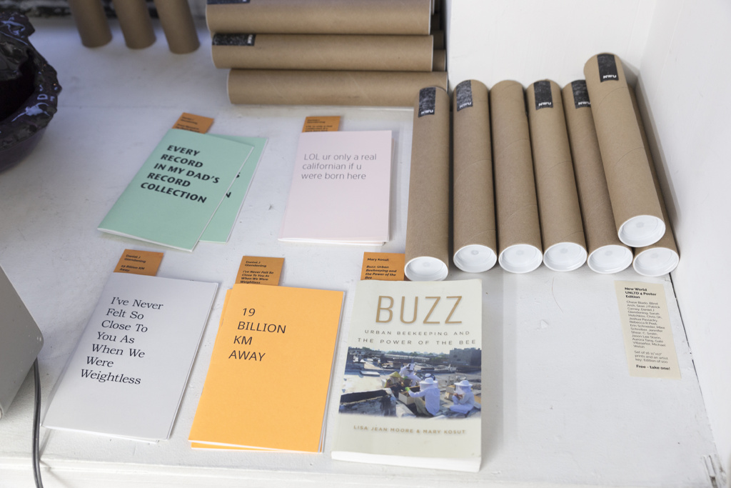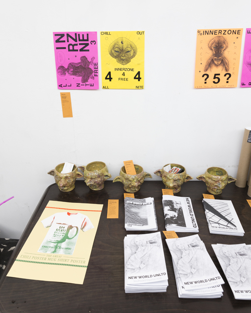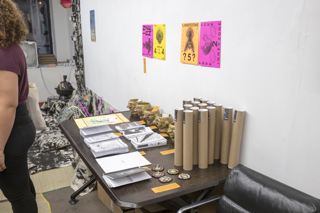 On the occasion of NEW WORLD UNLTD's two-year anniversary and the release of Volume 4, Shoot the Lobster presented a series of public programs organized by GWC, Investigators, including a ten-day installation of posters, videos, and an otherwordly merch table featuring NWU voyagers past, present, and future. Witness the birth of a new from the refuse of the old. This is a NEW WORLD forged in the image of all minds and hearts for the betterment of all.